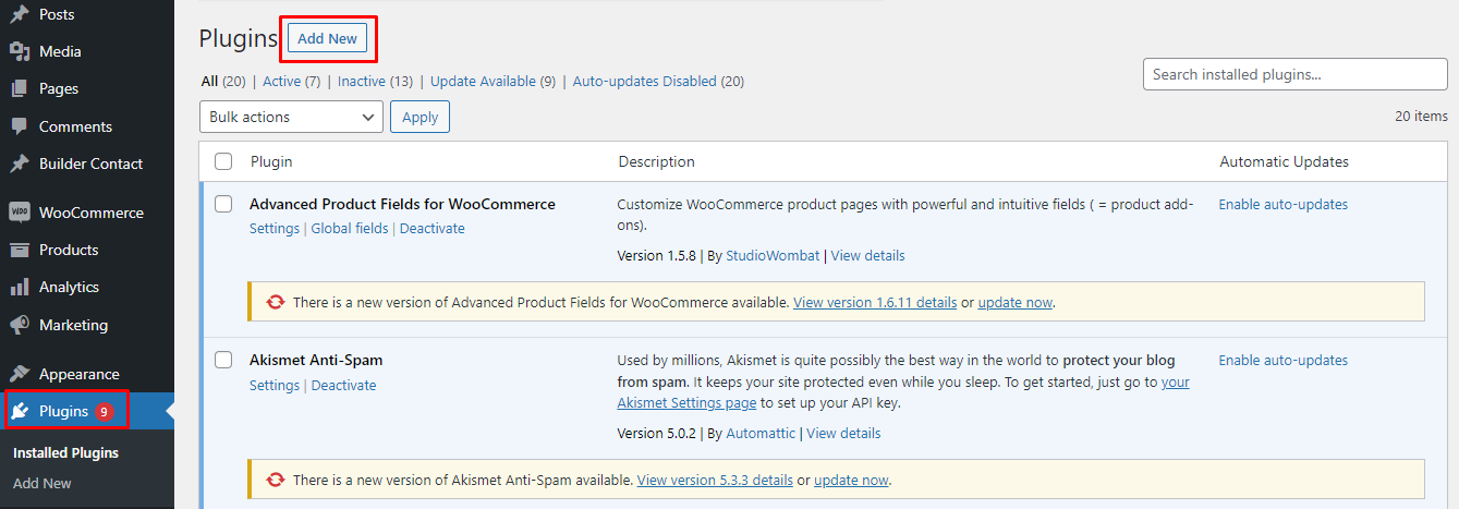 In the sidebar menu, click on Plugins > Add New