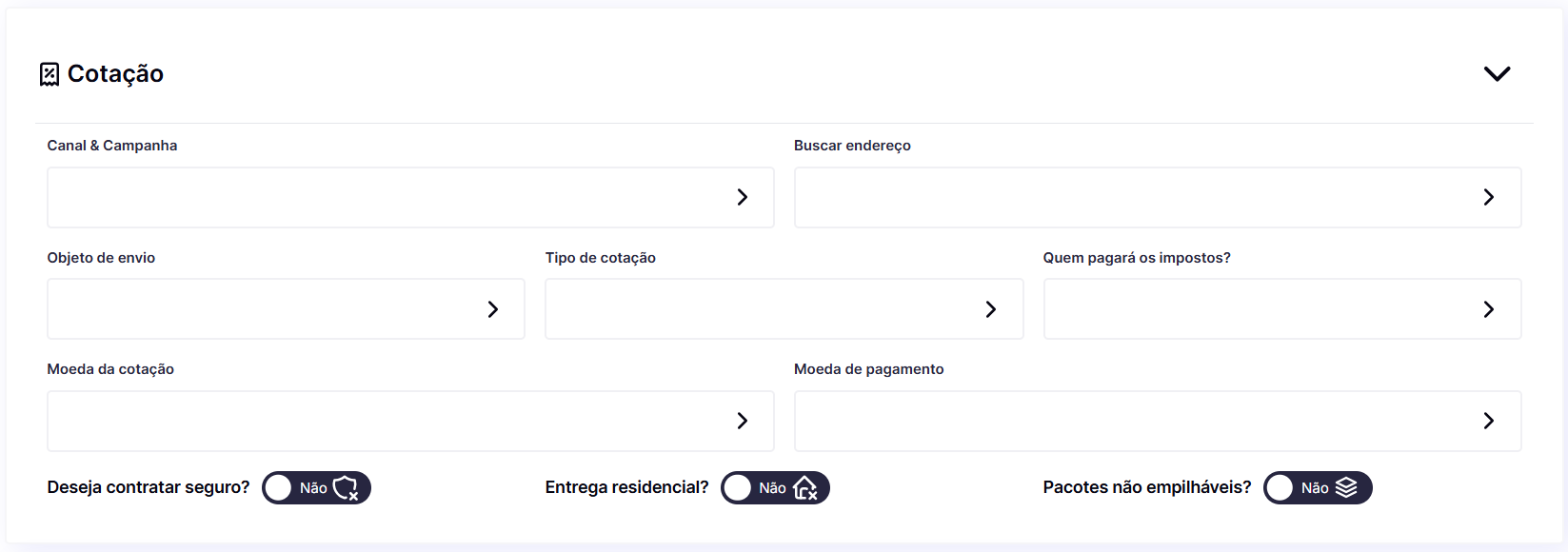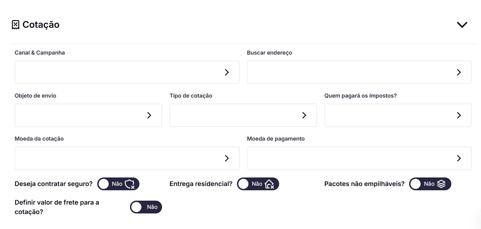 Através da configuração de Cotação, você pode definir certas informações de envio como padrão, facilitando a gestão e melhorando a eficiência de suas operações.