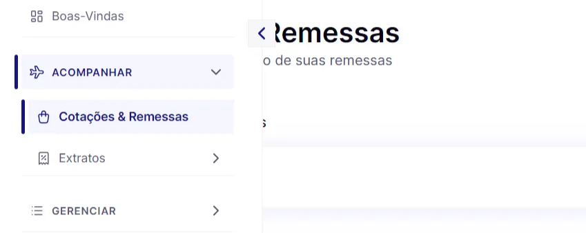 - Detalhes da remessa: Acompanhe o status da remessa.