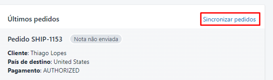 Quando um novo pedido internacional for feito na Shopify, você precisará sincronizá-lo manualmente no painel da ShipSmart. Para isso: